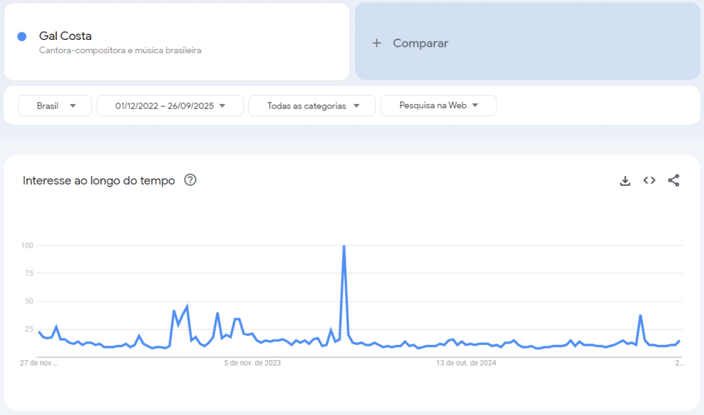 Cantora completaria 80 anos nesta sexta-feira (26) Entretenimento, #CNNPop, Gal Costa, Google Trends, Música CNN Brasil