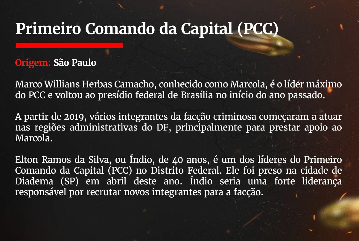 Veja as facções listadas que têm algum tipo de vínculo com o DF: