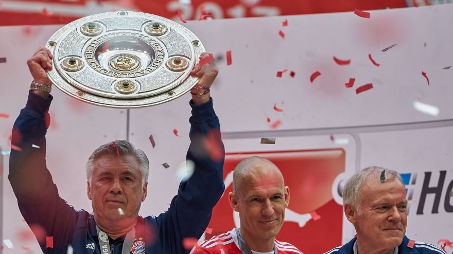 7 de 11Demitido do Real Madrid pelo então presidente Florentino Pérez em 2015, Ancelotti foi anunciado pelo Bayern de Munique para a sucessão de Pep Guardiola no clube bávaro. Na Alemanha, foi campeão da Bundesliga, tornando-se o primeiro técnico a conquistar as cinco principais ligas europeias. Pelo Bayern, também faturou duas Supercopas alemãs • TF-Images/Getty Images