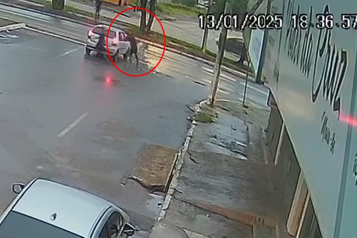 O vídeo obtido pela coluna Na Mira mostra que a vítima foi abordada por dois bandidos. Um deles pulou pela janela do carro. O motorista tenta sair do carro, mas é rendido pelo outro criminoso. Logo depois, a dupla foge com o veículo roubado.