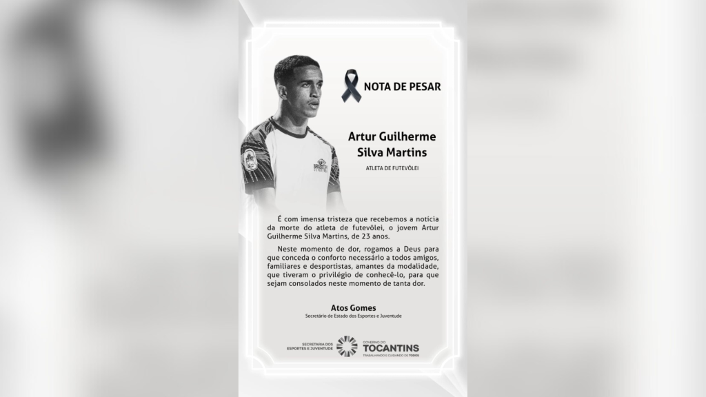 O atleta Artur Guilherme Silva Martins, de 23 anos, morreu durante uma disputa do Circuito Tocantinense de Futevôlei, em Palmas. A Federação de Futevôlei do estado confirmou a morte no último domingo (22) pelas redes sociais.