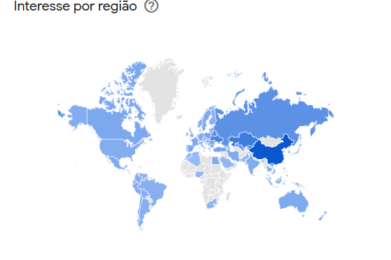 A China no gráfico aparece com um azul mais forte por ser o líder em buscas por “Avatar” • Google Trends
