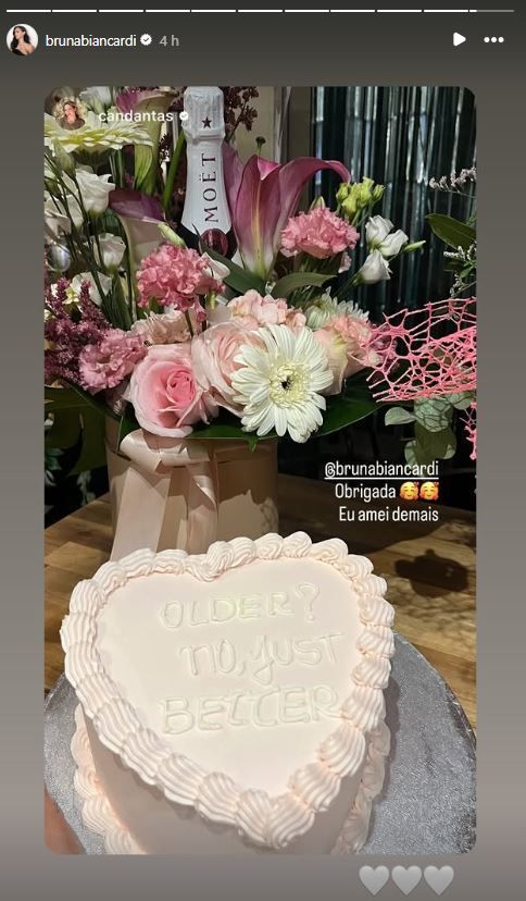A mãe de Davi Lucca, 14, primogênito do jogador, mostrou que ganhou um bolo especial, um espumante e um buquê de flores de Biancardi. “Obrigada, eu amei demais”, escreveu Carol Dantas.