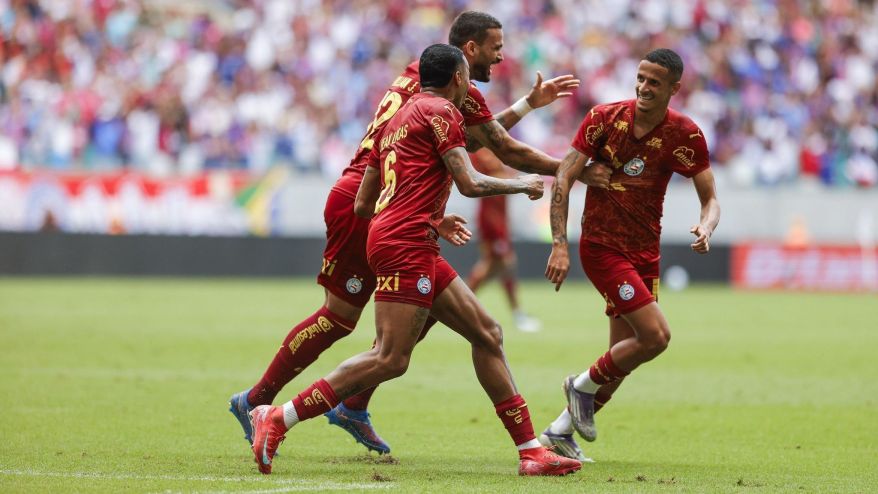 Jogadores do Bahia comemorando o gol contra o Santos, pelo Brasileirão • Rafael Rodrigues/EC Bahia