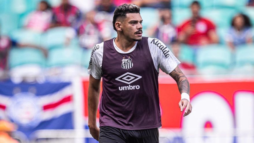 Tiquinho Soares, jogador do Santos, em aquecimento • Reprodução/X/@SantosFC