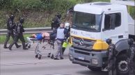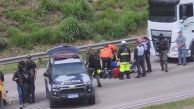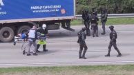 2 de 5O incidente começou quando uma carreta foi atravessada na pista, e o motorista foi encontrado amarrado e envolto em fios de bomba caseira. • CNN