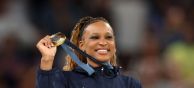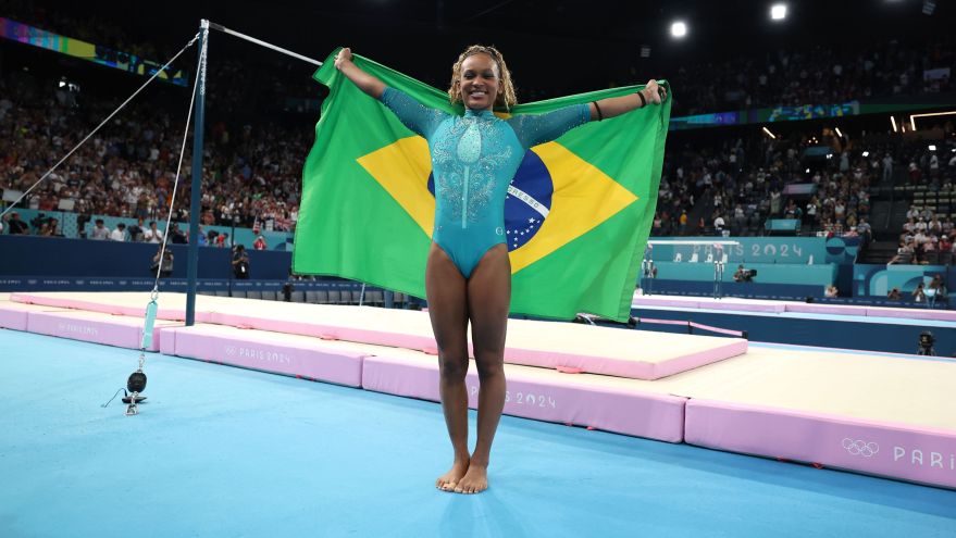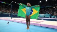 5 de 9Rebeca encerrou a sua participação em Paris 2024 com quatro medalhas: o bronze por equipes, a prata no individual geral, uma outra prata, no salto, e o ouro no solo