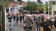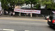 Protestos e temporal na porta do Morumbis