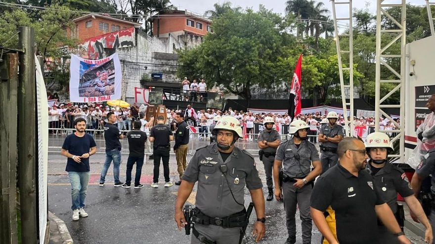Horas antes da votação que definiu o futuro de Julio Casares à frente do São Paulo, torcidas organizadas do clube marcaram presença no entorno do Morumbis para pedir a saída do presidente.