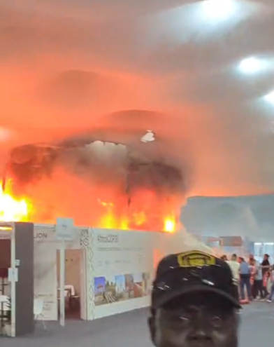 4 de 15Incêndio atinge Blue Zone na COP30 • Arshreet Singh/Carbon Pulse