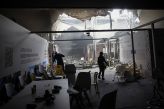 12 de 15Pessoas caminham dentro de uma estrutura danificada após um alerta de incêndio durante a Conferência das Nações Unidas sobre Mudanças Climáticas (COP30), em Belém • REUTERS/Adriano Machado