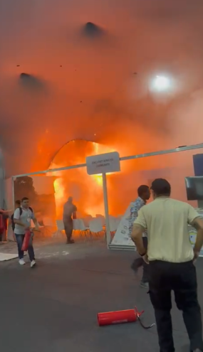 Mais cedo, em comunicado, os bombeiros informaram que o incêndio foi combatido em cerca de seis minutos, e há indícios de que o fogo tenha começado em um equipamento eletrônico, possivelmente um forno de micro-ondas instalado em um dos estandes.