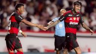 4 de 12Plata e Pulgar comemoram o gol do Flamengo sobre o São Paulo no Brasileirão • Adriano Fontes/Flamengo