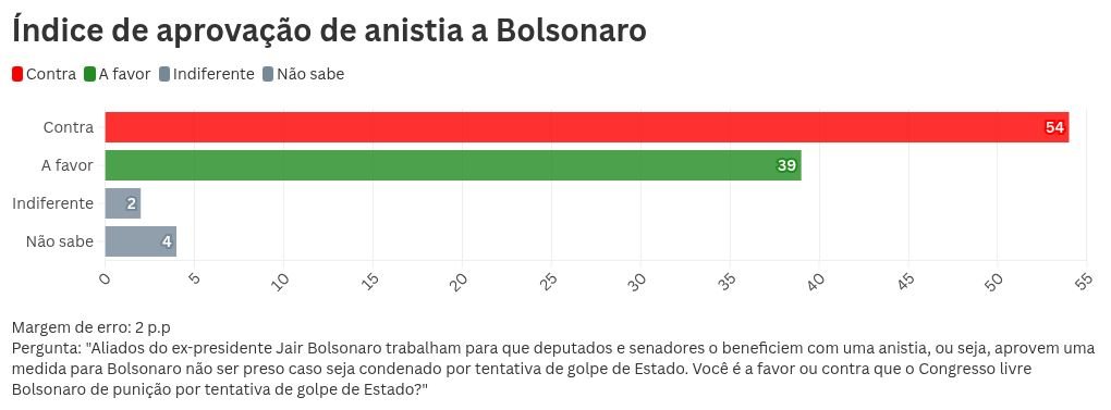 Portal Nação® > Noticias > outros > Datafolha: 54% rejeitam anistia a Bolsonaro; aprovação é de 39%
