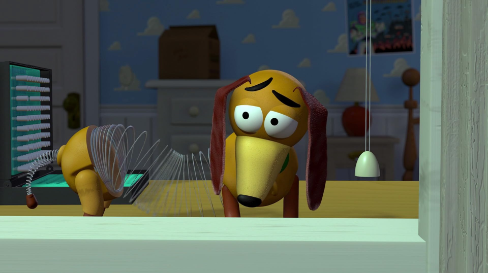 Metade cachorro, metade brinquedo de mola, Slinky é um dos personagens mais carismáticos da querida franquia da Pixar. Nos Estados Unidos, o personagem ganhou vida por meio de Jim Varney pela 1ª vez, no entanto, ele faleceu logo após o segundo filme e foi substituído por Blake Clark nas sequências. No Brasil, o amado personagem é dublado por Carlos Gesteira.