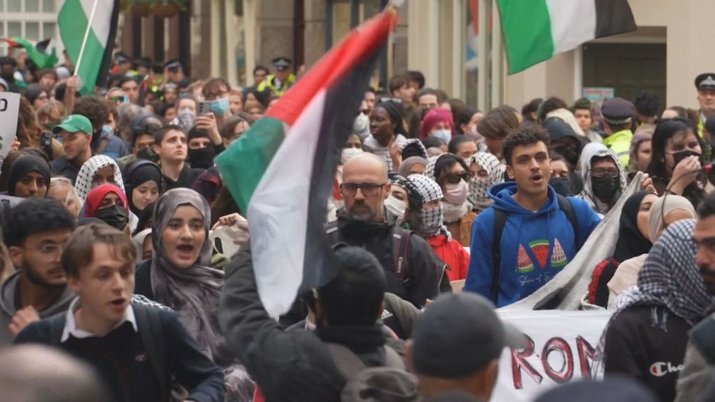 Em Londres, pelo menos duas manifestações pró-Palestina foram planejadas, incluindo uma “marcha interuniversitária” organizada por grupos estudantis. Eles afirmaram estar protestando pela “recusa de permitir que o genocídio seja normalizado, ignorado ou apagado”.