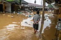 Moradores retornaram a suas casas cobertas de destroços, onde foram vistos recolhendo seus pertences e separando sacos de arroz danificados pelas enchentes.