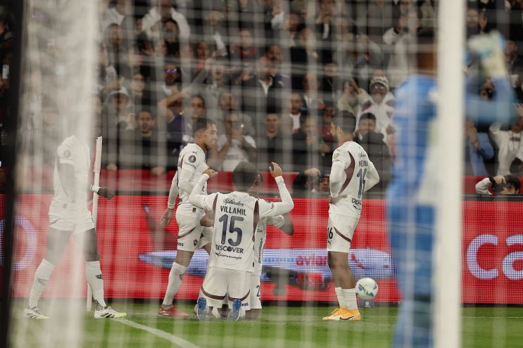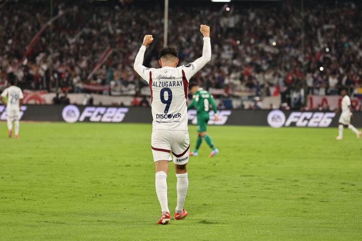 Villamíl celebra gol que abriu o placar contra o Palmeiras • @LibertadoresBR