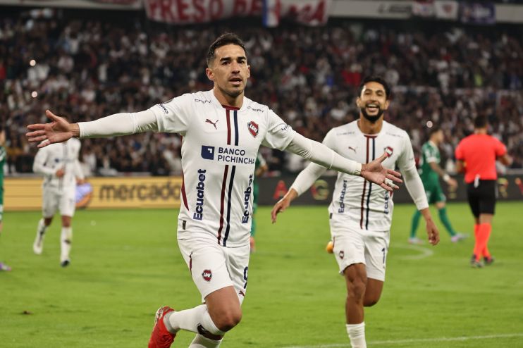Lisandro Alzugaray comemora o segundo gol da LDU sobre o Palmeiras na semifinal da Libertadores • Franklin Jacome/Getty Images