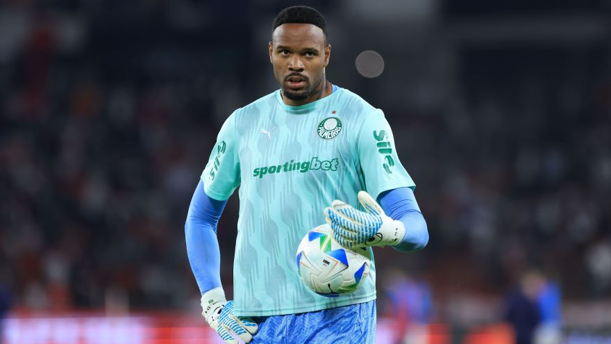 Goleiro Carlos Miguel aquece antes de LDU x Palmeiras • Franklin Jacome/Getty Images