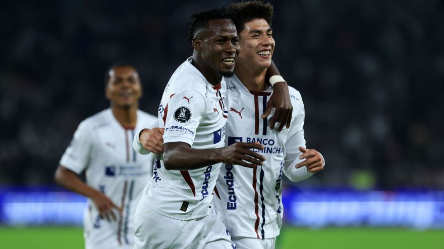 LDU comemora gol sobre o Palmeiras na Libertadores • Franklin Jacome/Getty Images
