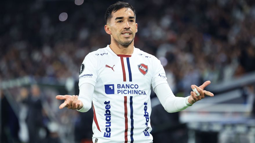 Flaco López recebe cartão após entrada dura • Franklin Jacome/Getty Images