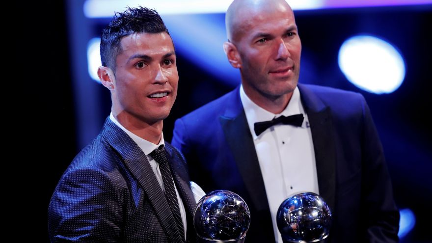 8 de 9Cristiano Ronaldo, melhor jogador, e Zidane, melhor técnico, no prêmio Fifa The Best de 2017. • 23/10/2017 – REUTERS/Eddie Keogh