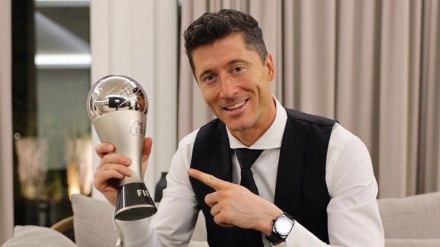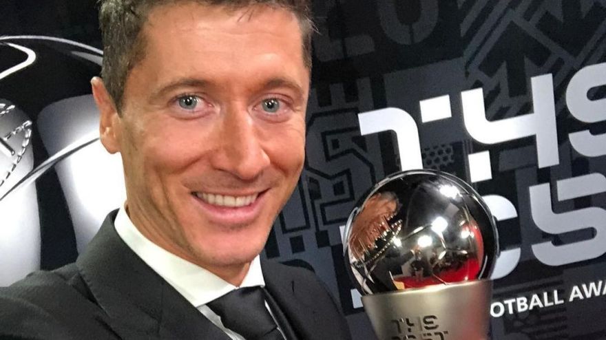 5 de 9Robert Lewandowski com o prêmio Fifa The Best 2020. • Reprodução/Instagram Lewandowski