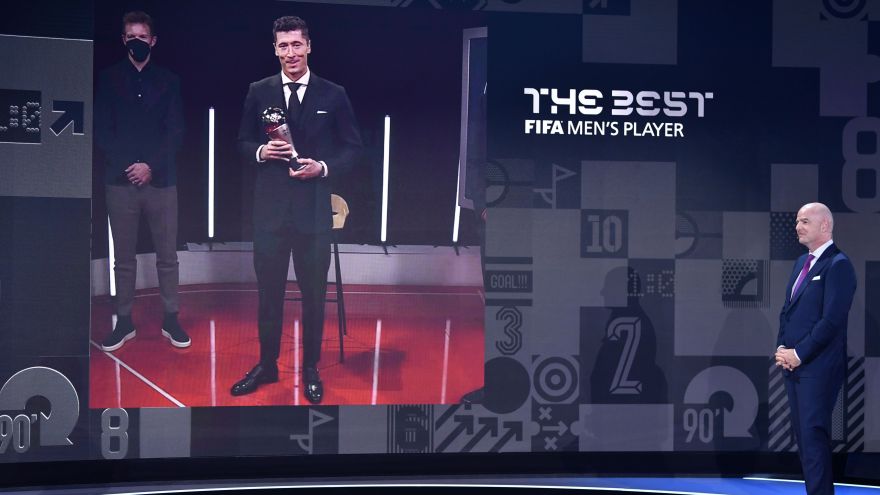 3 de 9Robert Lewandowski no prêmio Fifa The Best 2021. • 17/1/2021 – Harold Cunningham/FIFA/Getty Images