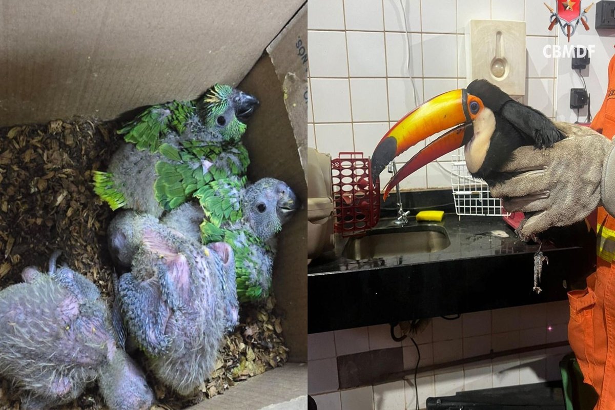 Em outra ocasião, também nessa terça-feira, o Corpo de Bombeiros Militar do Distrito Federal (CBMDF) resgataram um tucano em uma avenida localizada em Santa Maria.