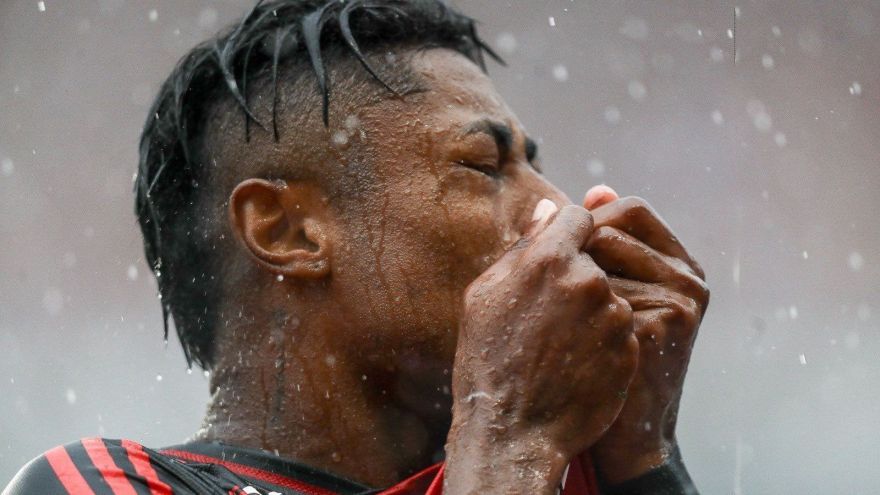 3 de 10Bruno Henrique comemora seu gol beijando a camisa do Flamengo • Divulgação/Flamengo