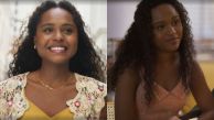 Beatriz (Duda Santos) no início e no final de “Garota do Momento” • Reprodução/ Globoplay