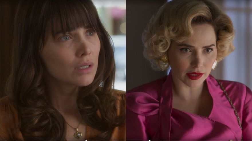 Zélia (Letícia Colin) no início e no final de “Garota do Momento” • Reprodução/ Globoplay