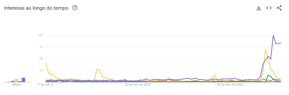 É justamente a participação de Gracyanne Barbosa no BBB25 que alavanca as buscas por ela no Google. “bbb 25” e “bbb25” são os termos que lideram a lista de pesquisadas relacionadas ao nome da influenciadora fitness em ascensão no Google. Entre os dez primeiros lugares, aparecem buscas como “vitoria strada”, “irma gracyanne barbosa antes e depois”, “diego hypólito”, “vitória strada” e “diogo almeida”, que dizem respeito a outros participantes confinados no reality show.