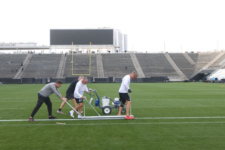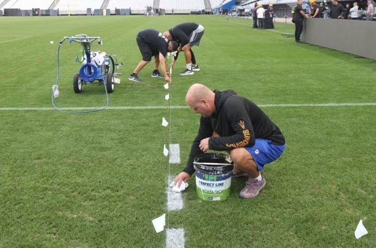 4 de 5Gramado da Neo Química Arena passa por personalização para receber NFL • José Manoel Idalgo/Agência Corinthians