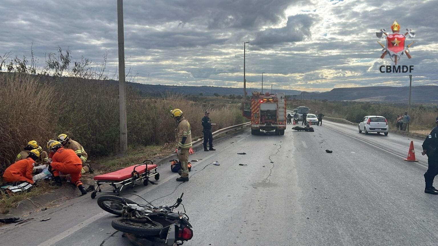 O Corpo de Bombeiros Militar do Distrito Federal (CBMDF) encontrou o homem de 37 anos, que estava pilotando uma Honda CG 125, de cor preta, caído inconsciente e com traumatismo craniano grave.