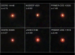 Descobertas de 2026 (6) – Observações realizadas peloTelescópio Espacial James Webb identificaram centenas de pequenos objetos avermelhados em imagens profundas do Universo primitivo. Um estudo liderado por Rusakov et al., publicado na revista Nature em janeiro, apresentou uma nova interpretação para esses objetos. De acordo com os autores, os LRDs correspondem a buracos negros em fase inicial de crescimento • Reprodução NASA, ESA, CSA, STScI, JWST; Dale Kocevski (Colby College)