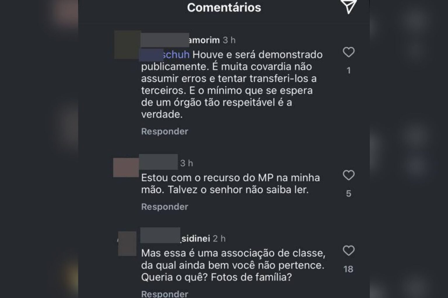 Nos comentários, promotores criticaram o posicionamento. “Nota classista! Quem decide é o Juiz, e não apenas com base em laudos. Há várias responsabilidades. Cada um que assuma a sua!”, disse o promotor Eugenio Paes Amorim.