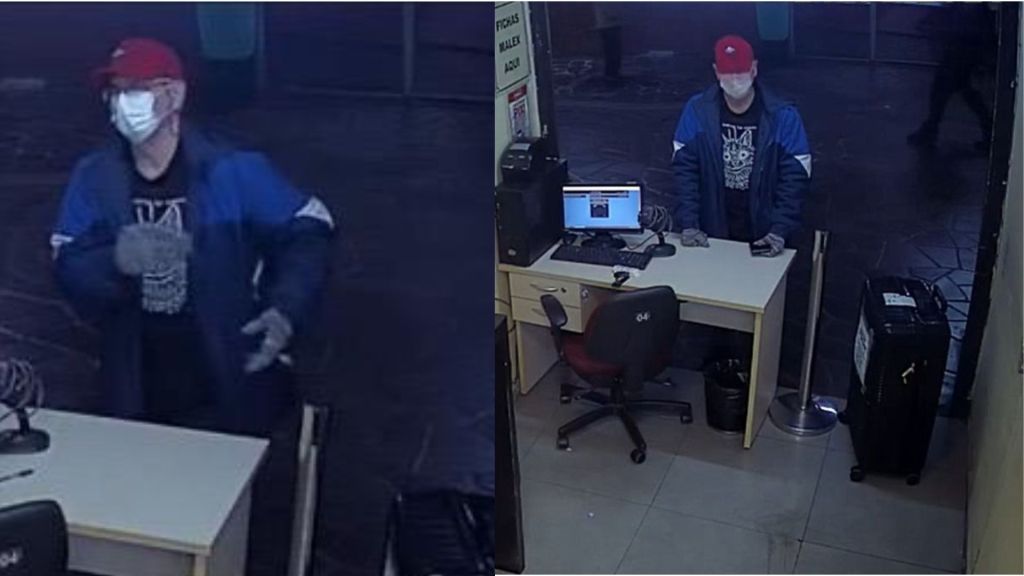 Nas imagens das câmeras de monitoramento é possível ver o homem disfarçado com máscara, óculos e boné. De acordo com a polícia, o disfarce é um sinal claro de que ele planejou e organizou o crime.