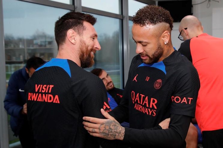 Messi reencontrou Neymar, seu companheiro de ataque no clube francês. • Divulgação/ PSG