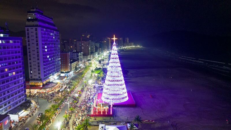 4 de 7Praia Grande, no litoral de São Paulo, está se preparando para o Natal com uma decoração especial, incluindo 13 árvores de Natal. A principal, de 45 metros, é a maior da Baixada Santista e do Vale do Ribeira. • Prefeitura de Praia Grande (SP)