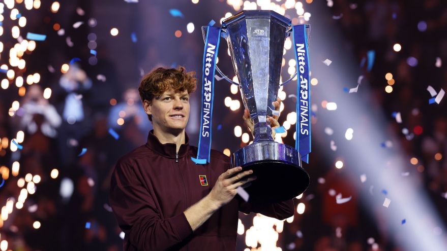 Jannik Sinner com o troféu do ATP Finals • Clive Brunskill/Getty Images