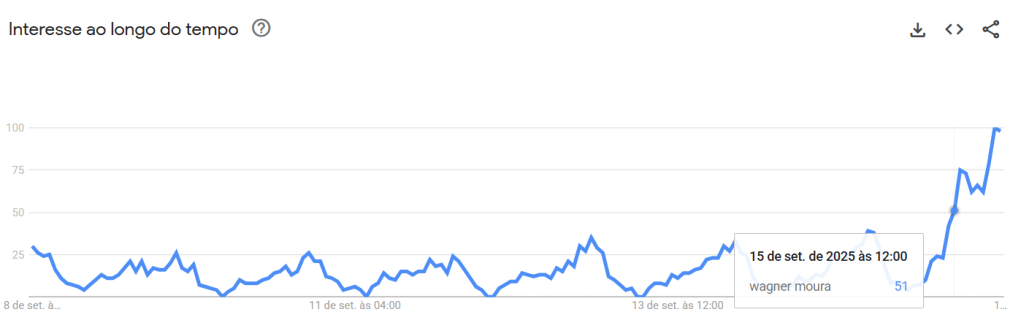 Após o filme “O Agente Secreto” ser escolhido para representar o Brasil na disputa por uma indicação no Oscar 2026, maior premiação de cinema no mundo, as buscas pelo nome do ator Wagner Moura, que estrela a produção, aumentaram mundialmente no Google.