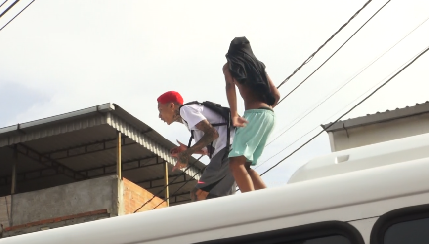 4 de 5Oruam sobe em ônibus na saída do MC Poze do Rodo da cadeia no RJ • Reprodução/CNN