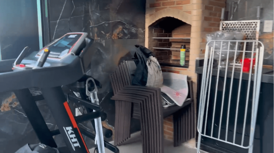 A descoberta foi feita nesta quinta-feira (26), durante o processo de desmonte de uma das edificações. A parede, que visualmente se integrava ao acabamento do interior da residência, funcionava como uma porta oculta, conectando o imóvel diretamente à vegetação nos fundos.