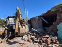 Cerca de 30 agentes participaram da demolição, que precisou ser feita sem a ajuda de máquinas por conta da complexidade do terreno.