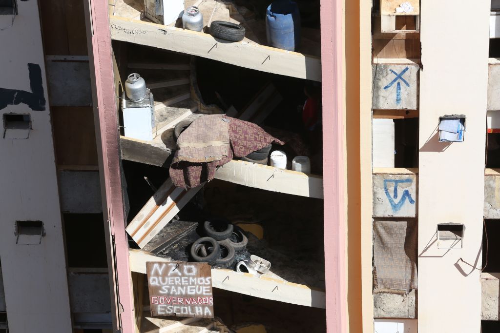 Os ocupantes ofereceram resistência, arremessando pedras, telhas, correntes e até botijões de gás contra os policiais, além de atearem fogo à parte superior do edifício utilizando um fogão e um botijão de gás.