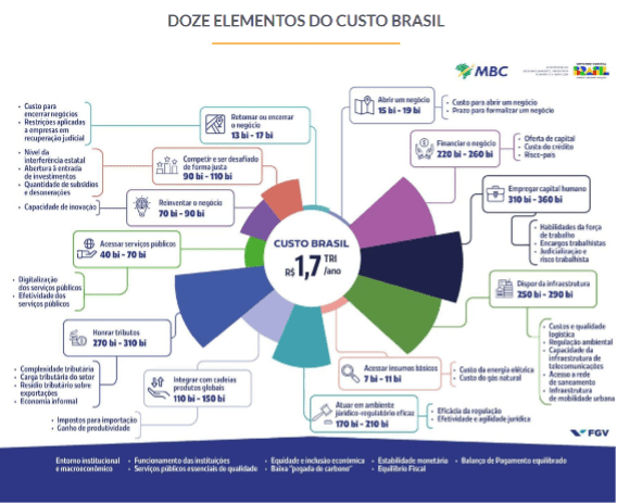 Fonte: MBC. Doze elementos do custo Brasil. Disponível em: https://www.mbc.org.br/programa-custo-brasil/. Acesso em 28/11/2025.