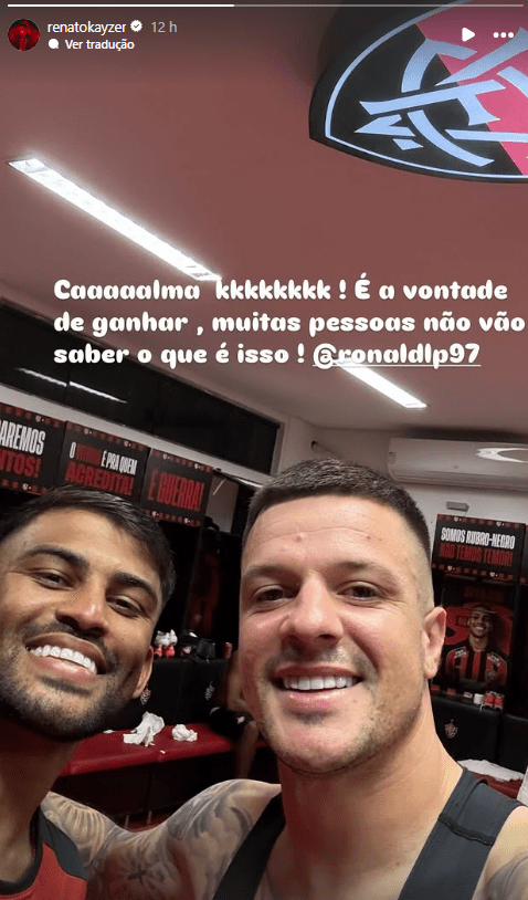 Ao final da partida, o centroavante Renato Kayzer publicou uma foto abraçado com Ronald Lopes e um texto minimizando o momento tenso.