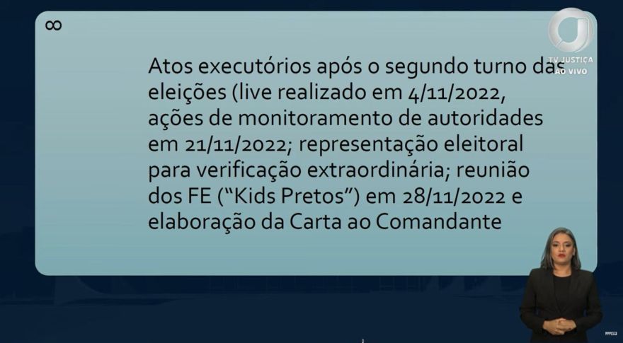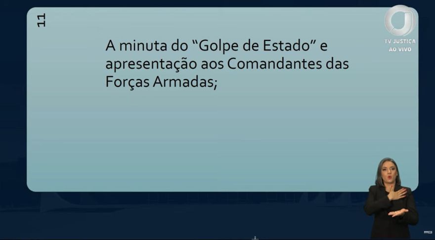 O ministro também dividiu sua manifestação em 13 pontos que narraram, em ordem cronológica, como teria atuado a organização criminosa pelo golpe. Veja: